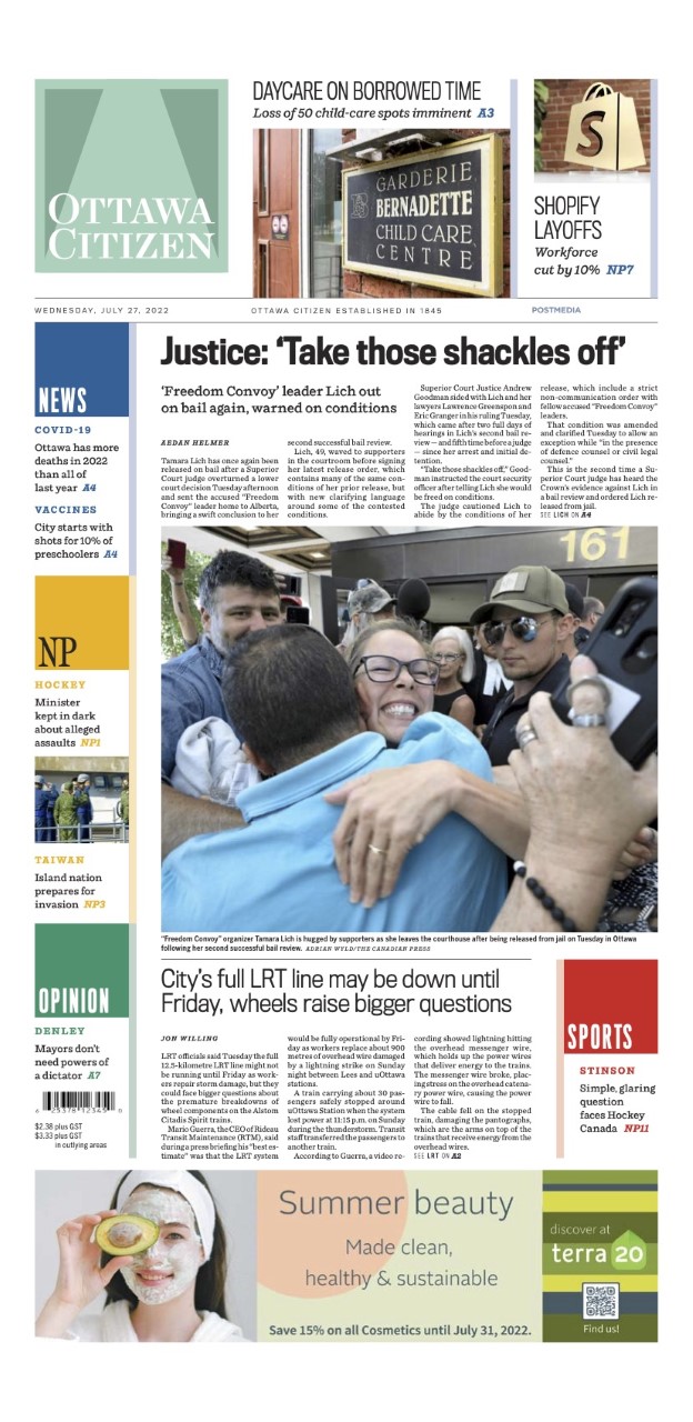Ottawa Citizen On Twitter Here Is The Front Page Of The Ottawa Citizen For Wednesday July 27 2022 Https T Co Ksveiyfkxu Twitter